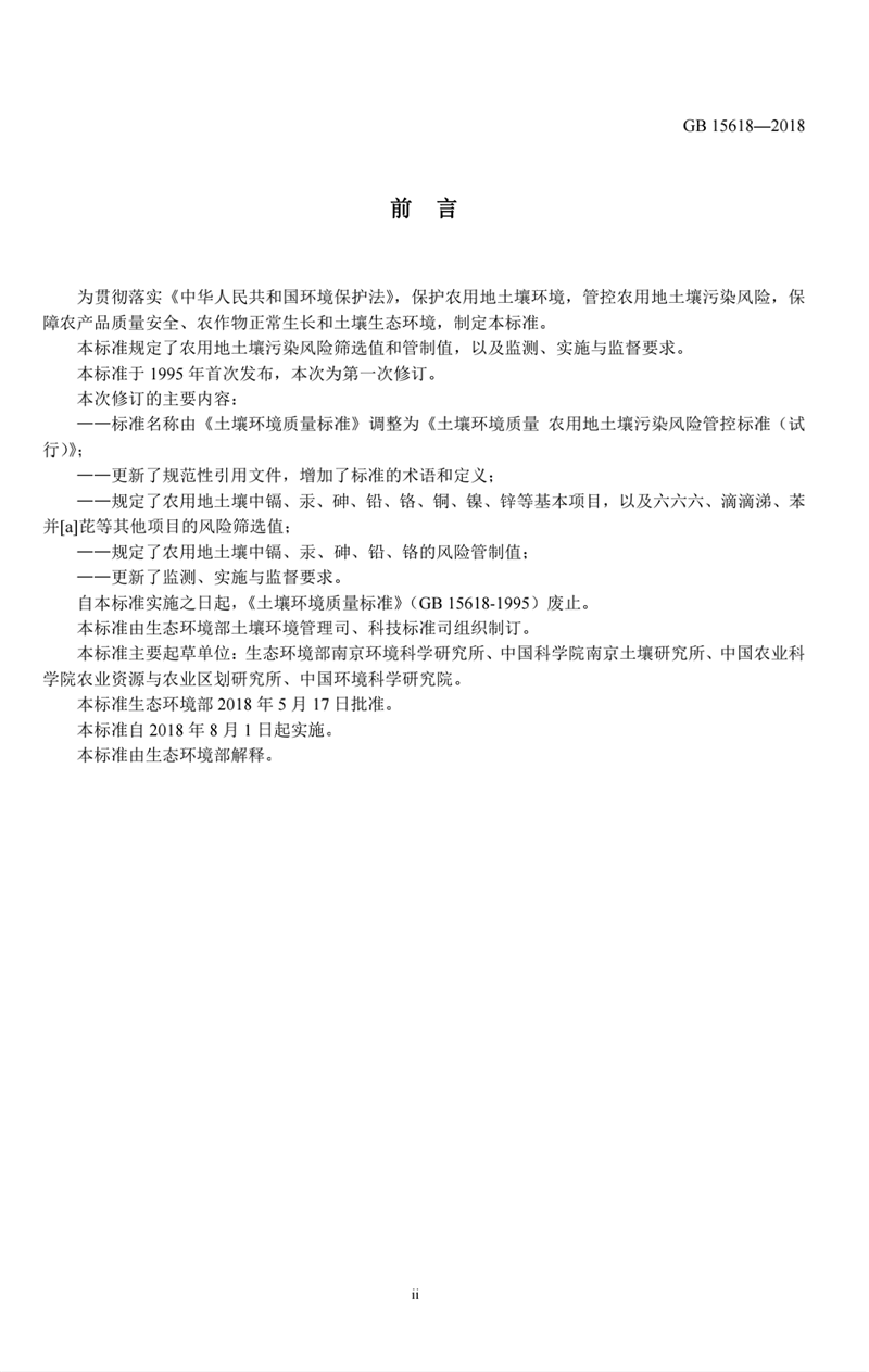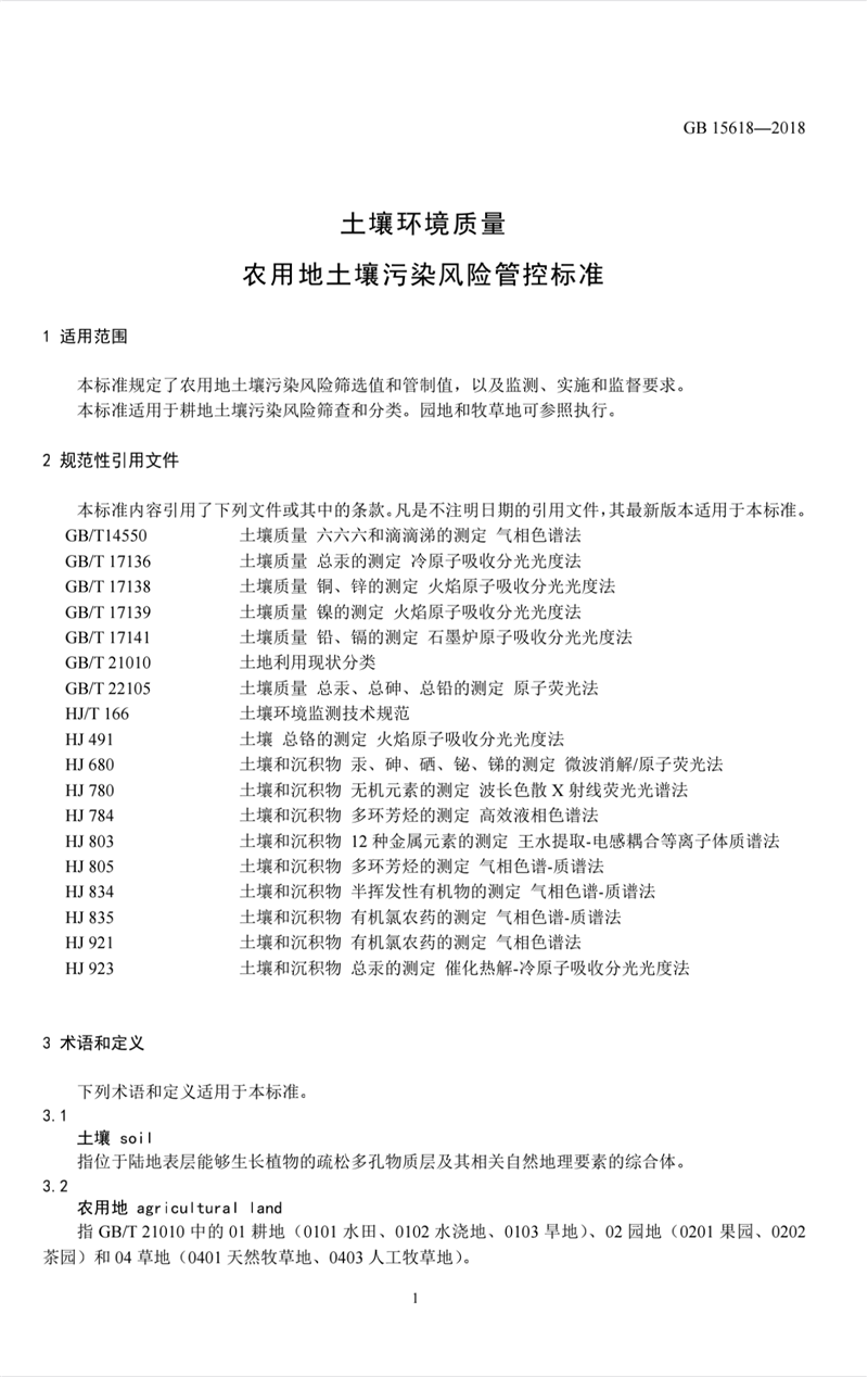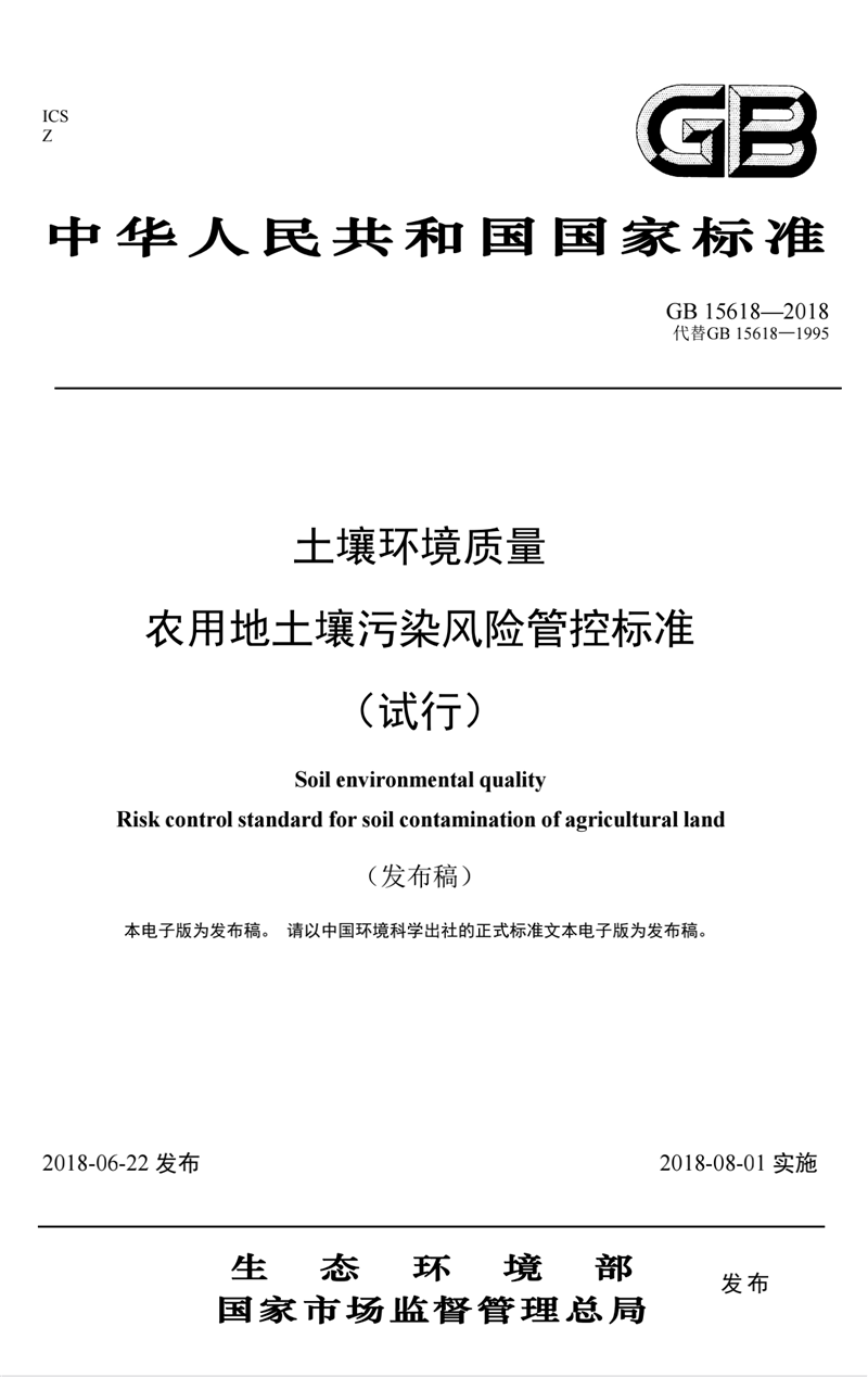GB15618-2018 土壤環(huán)境質(zhì)量 農(nóng)用地土壤污染風(fēng)險(xiǎn)管控標(biāo)準(zhǔn)