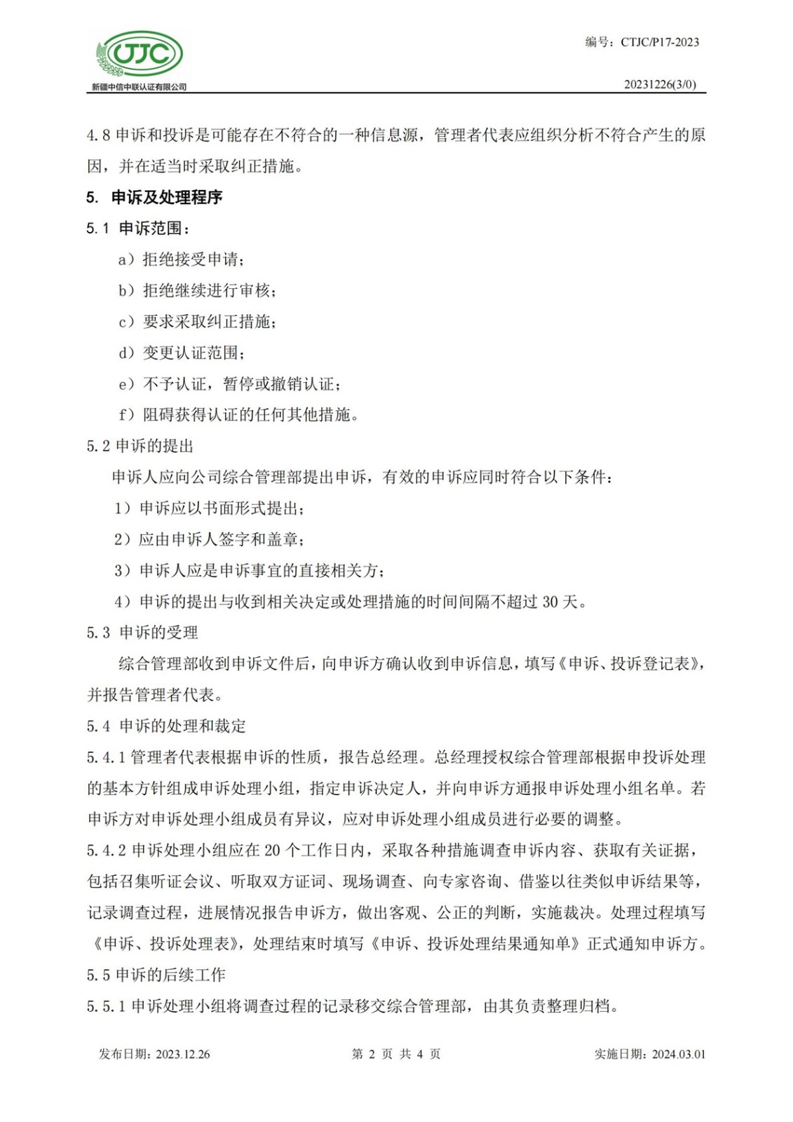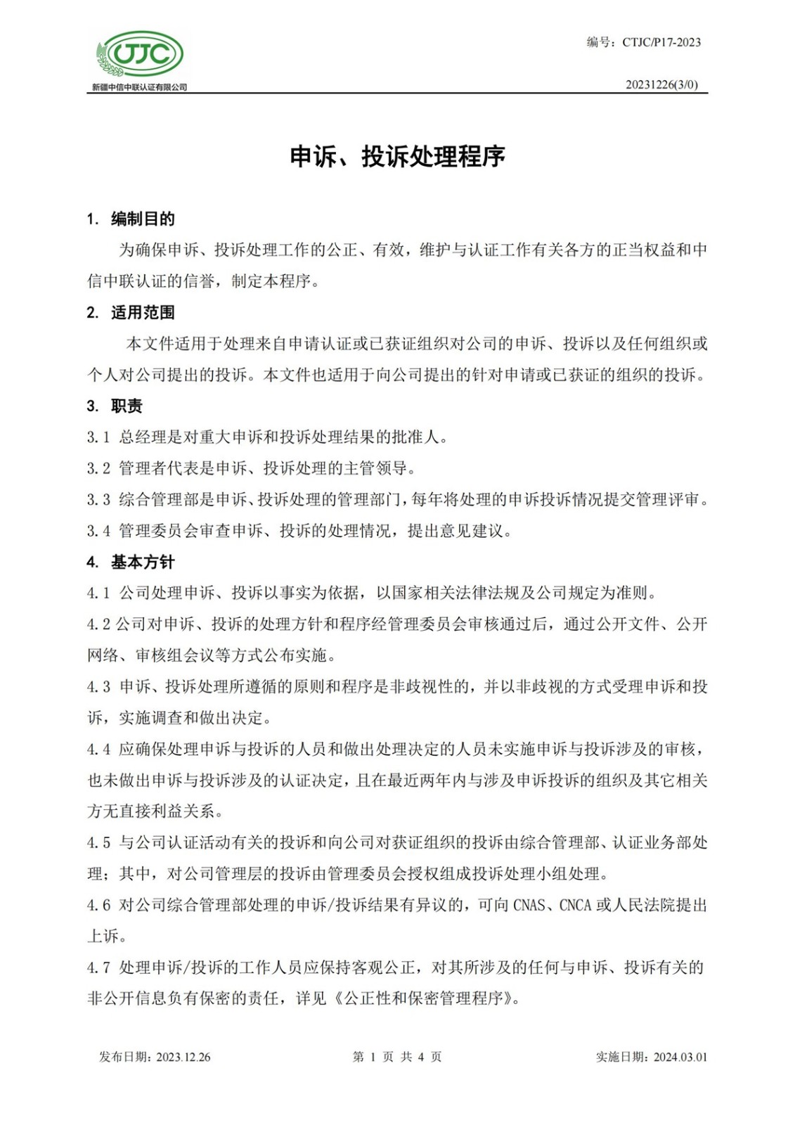 申訴和投訴處理程序